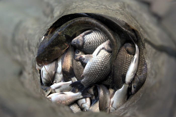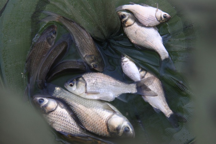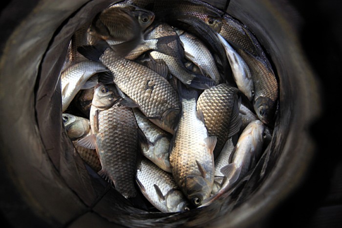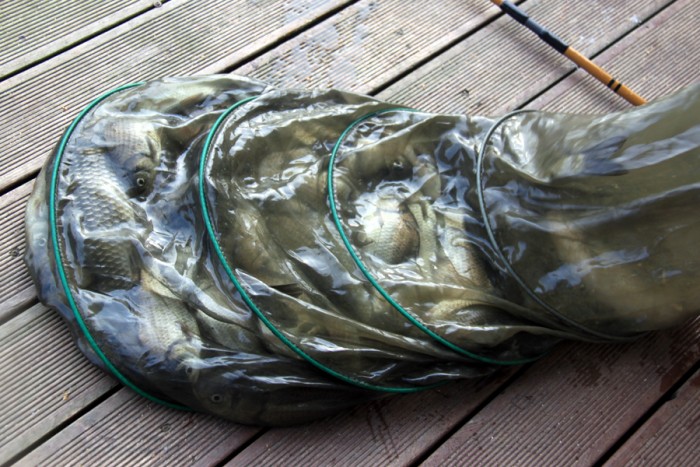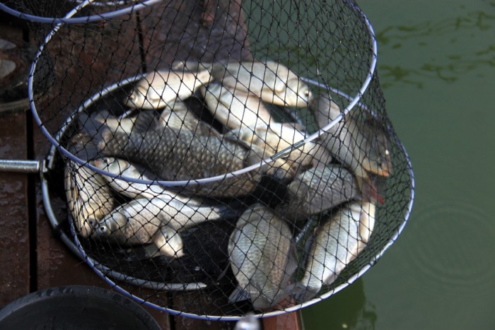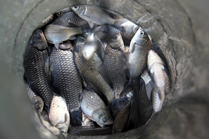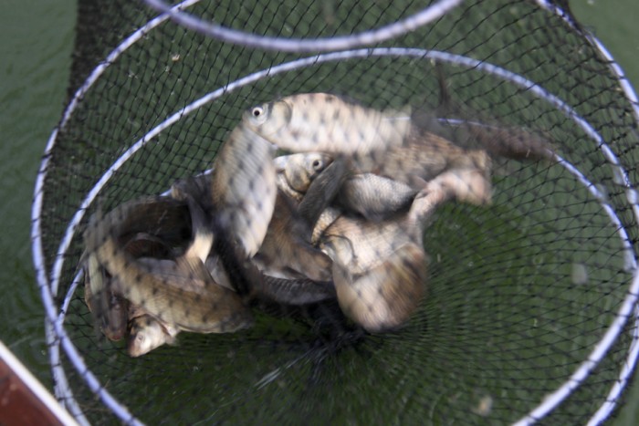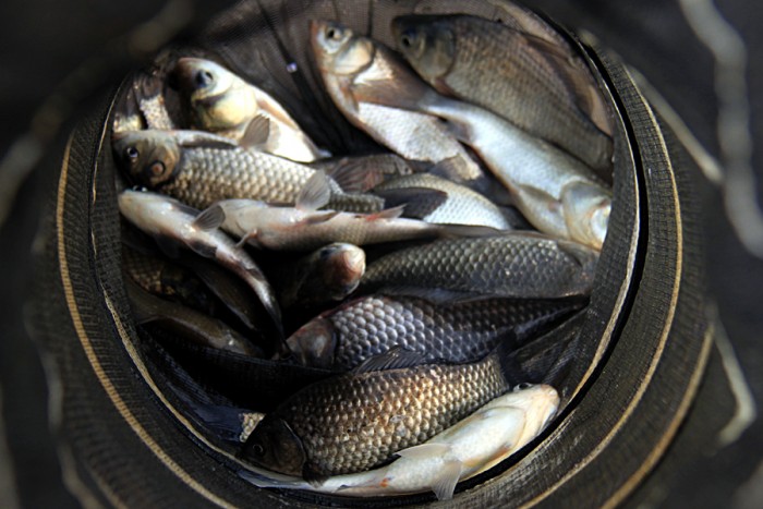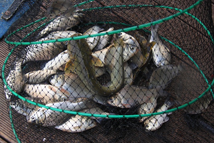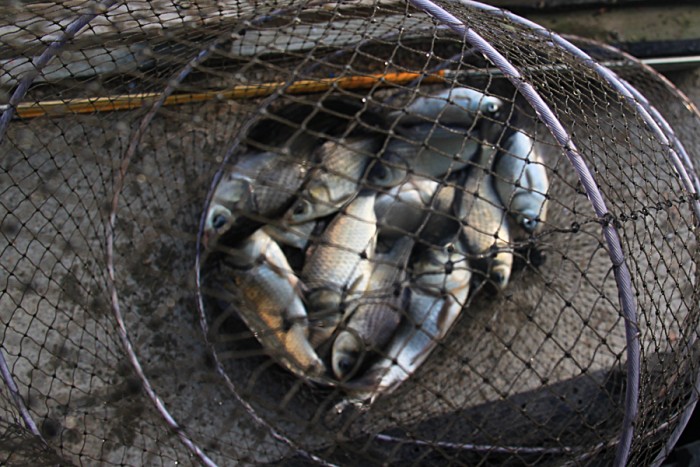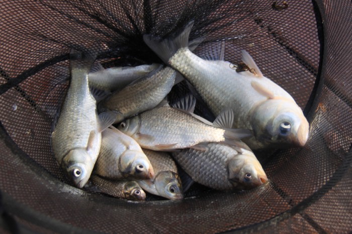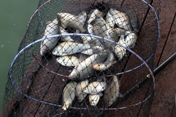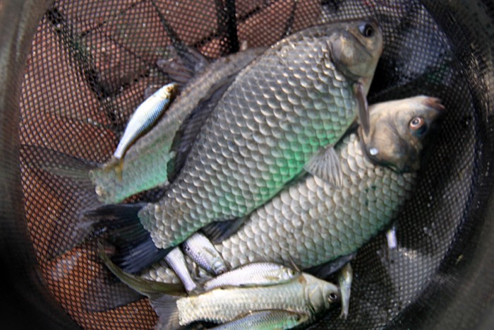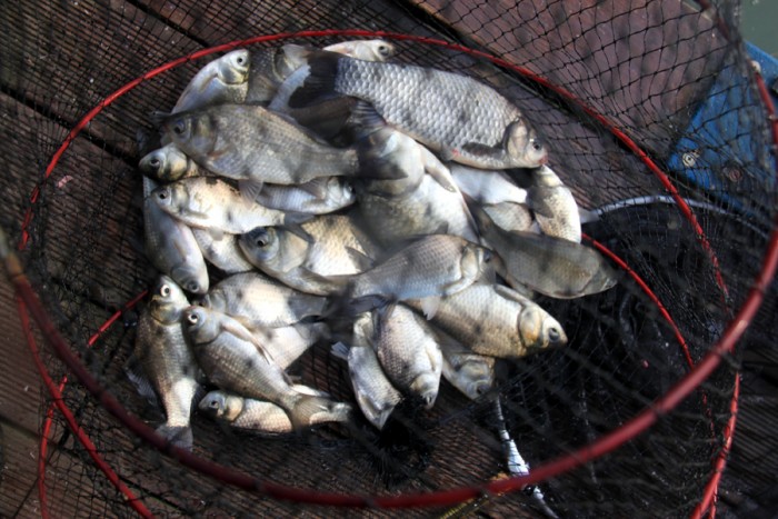 살림망 두 개에 붕어를 그득하게 잡아 놓으셨네요.