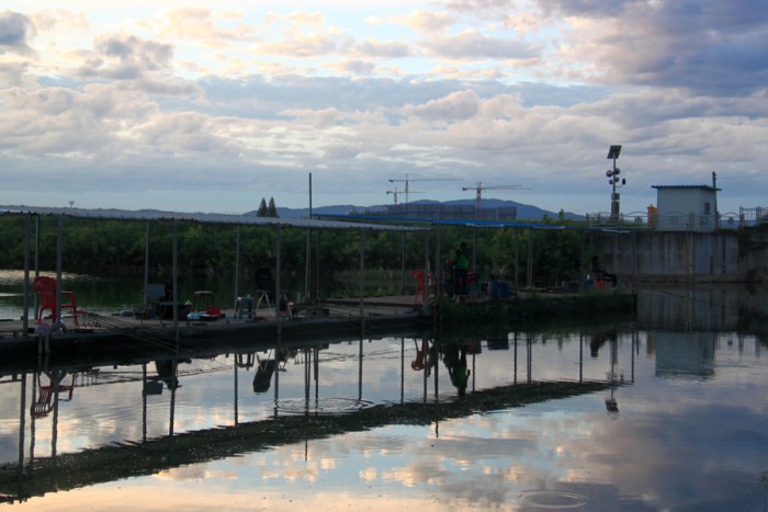 아침 일찍 도착한 만정지 동녘하늘은 구름이 끼어 멋지게 보이네요.