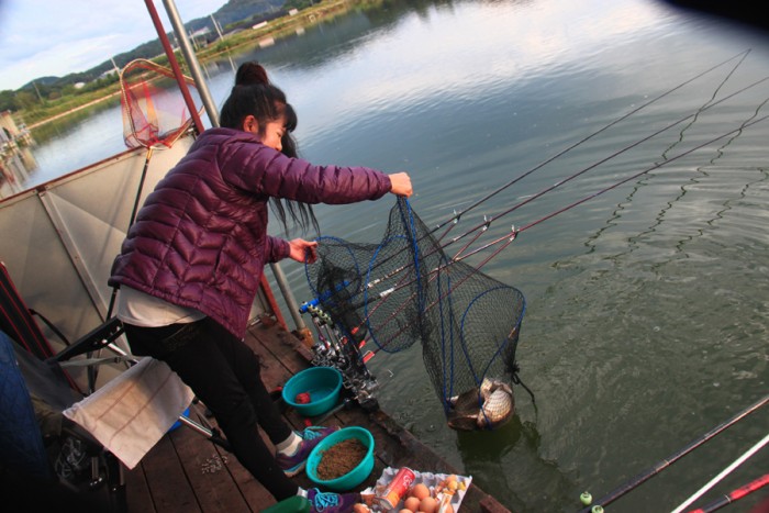 중류권에선 입질대박의 여성 조사님이 굵직한 토종 붕어들을