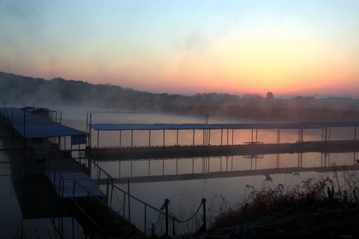 새벽을 달려 만정지에 도착하니 벌써 해가 뜨고 있네요.