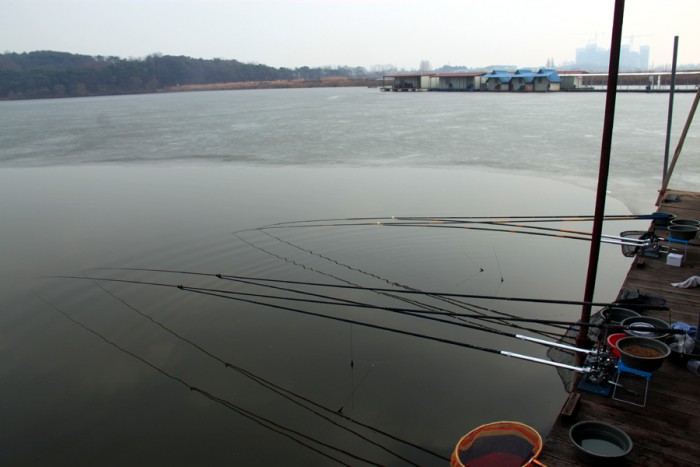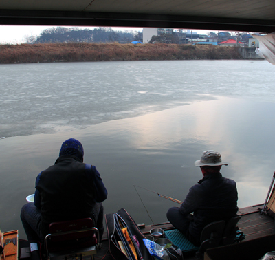 이제 막 전을 편 낚시인도 막 한 수 걸어 내네요.