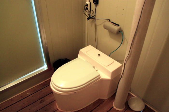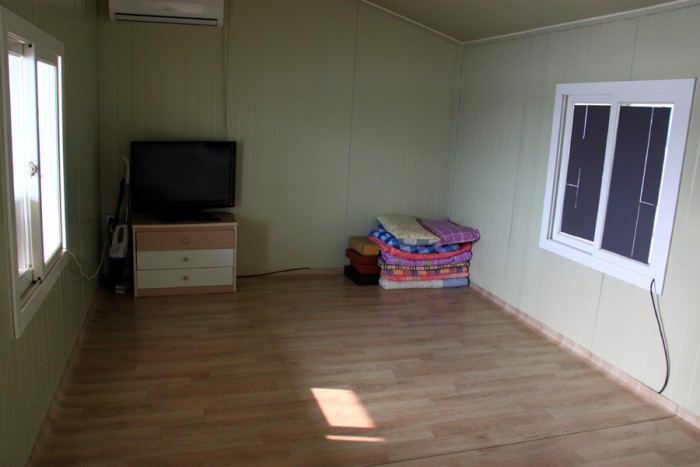 낚시가 가능하며 전기온돌 패널 깔린 실내, 포세식 좌변기,