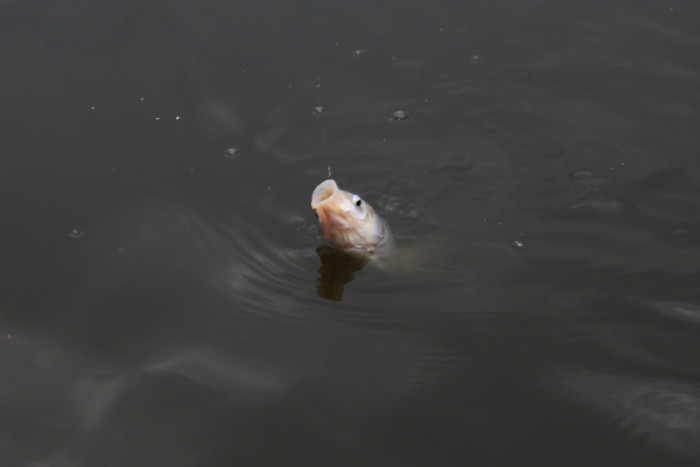 몇 번 투척하니 찌가 살살 움직이다가 입질이 들어오네요.