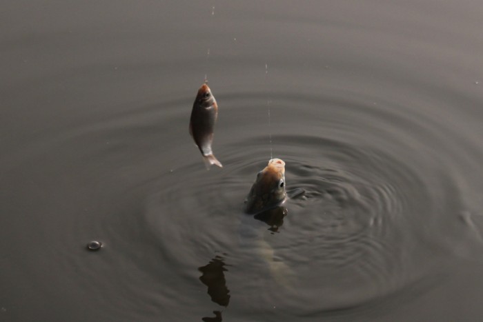 다음에는 잔 붕어와 잉어까지 쌍걸이도 나오고요.