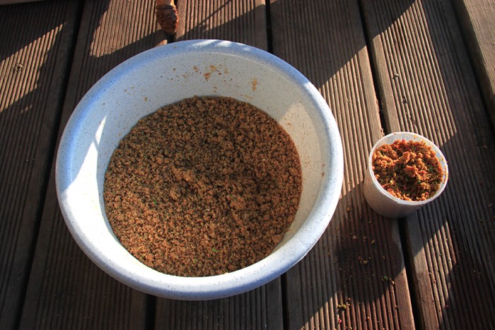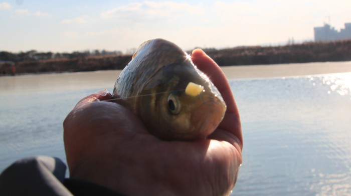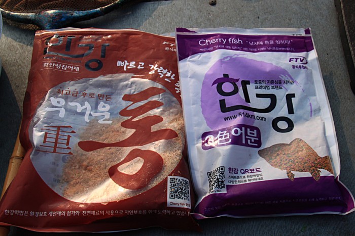 미끼는 한강 무통 400cc에 물 80cc 주어 수분을 먹게 한 후에