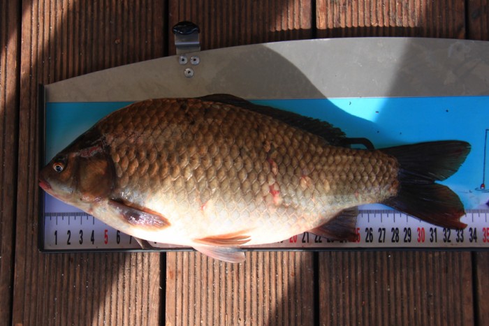 붕어는 몇 마리 안됐지만 33cm급 잡아 놓았네요.