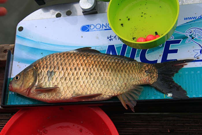 많은 마릿수는 아니지만 35.5cm 붕어를 잡아 놓으셨네요.